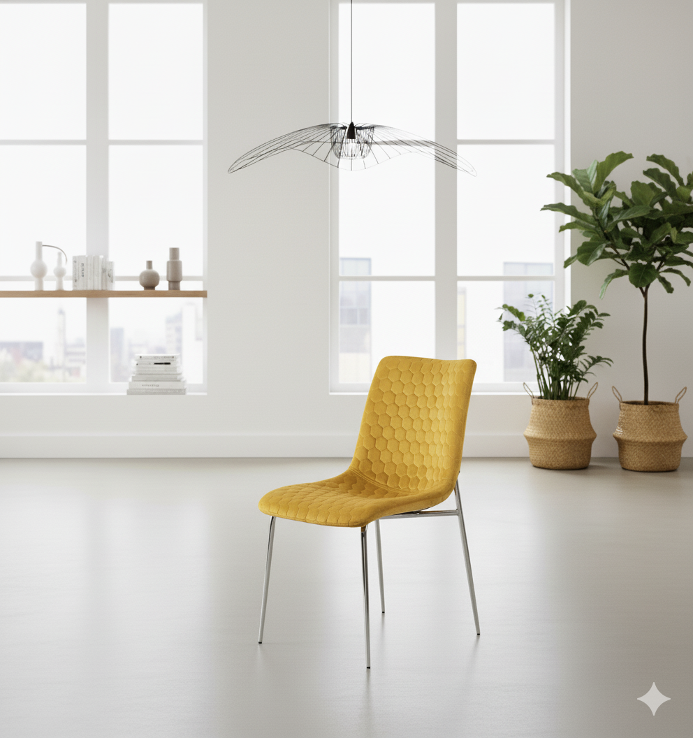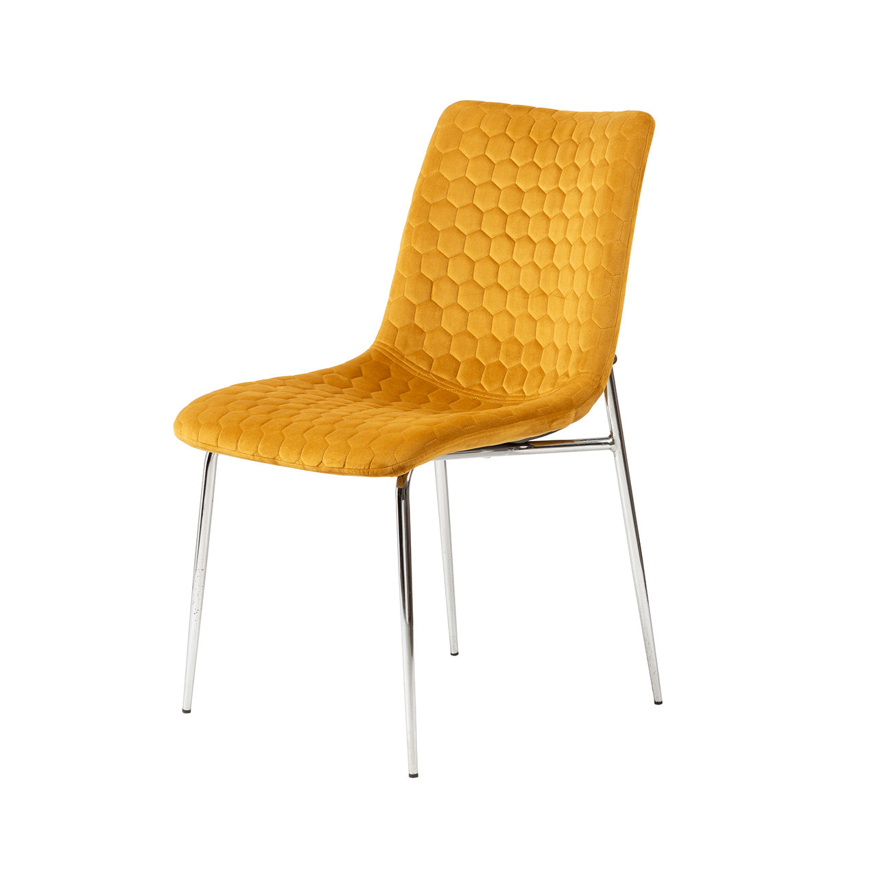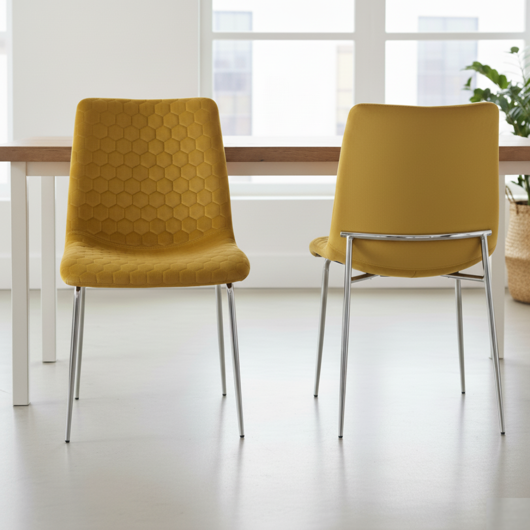 Set Of 2 Zula Mustard Dining Chairs With Chrome Legs